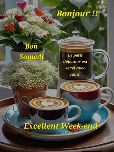 Bonjour Charlotte Un petit café pour commencer la journée Bon week-end avec ta famille @+ |