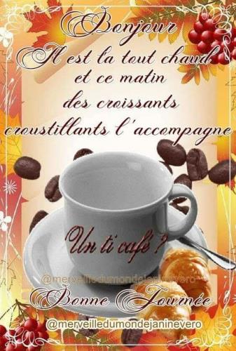 Bonjour Charlotte Un oetit café Temps clair pour le moment Bon lundi @+ |